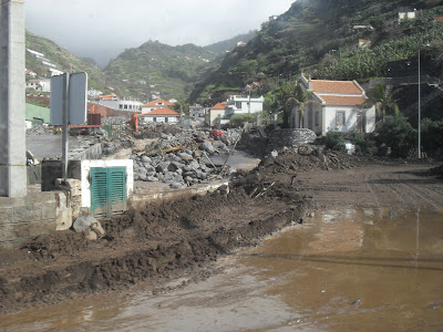 Um dilúvio dos céus provocado por uma precipitação intensa, num curto espaço de tempo, mais lixo acumulado e solos impregnados de água, fizeram transbordar as ribeiras, enquanto as montanhas se moveram para só parar no mar. As suas gentes, as suas flores, conheceram um episódio imprevisto e cruel e, sem aviso prévio, viram-se arrastadas entre torrentes de pedras, destroços, árvores arrancadas, viaturas e partes de casas, por ribeiras que semearam o pânico e a dor. Os ambientalistas argumentaram, em 2008, na Rtp2, que uma catástrofe deste tipo poderia estar eminente, agora que aconteceu, alegam “má gestão urbanística”. O presidente do Governo regional nega. Afirma que, “não interessa encontrar culpados”, mas sim “reconstruir a Madeira”. O montante necessário, anuncia, 1 bilião de euros. Dois terços do seu orçamento de estado.